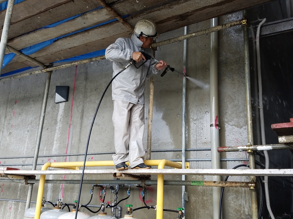 目粗し研磨後、高圧洗浄