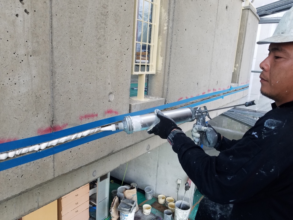 プライマー塗布後、高耐久性コーキング材充填