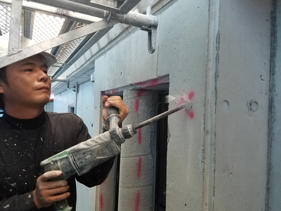 笠木モルタル・爆裂等、ハツリ後