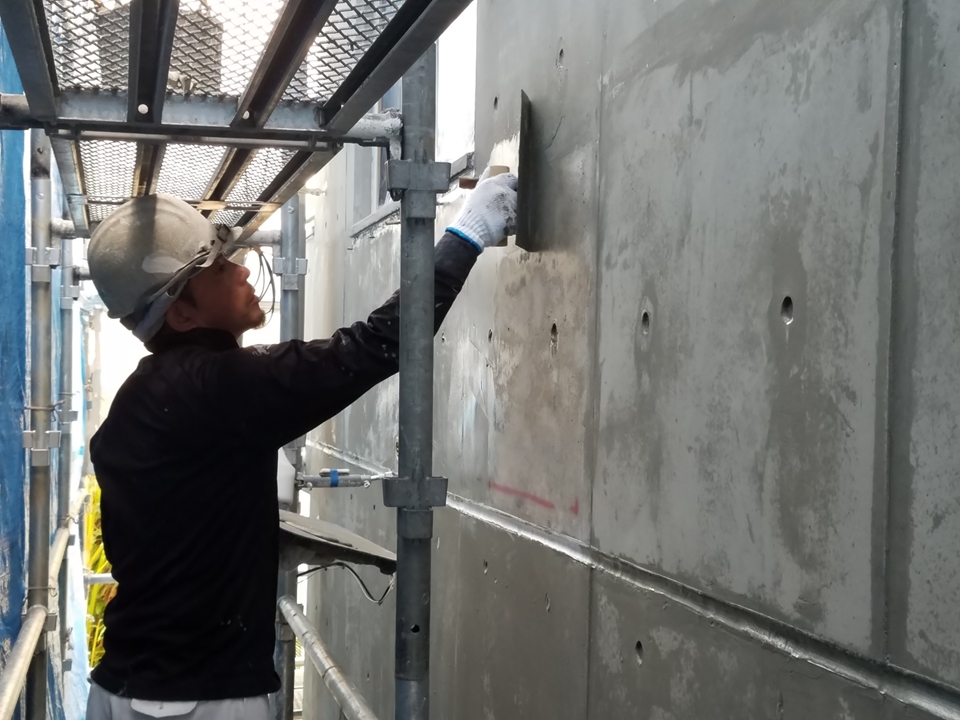 コンクリートは無数のピンホールが存在し、美観を損ねています。