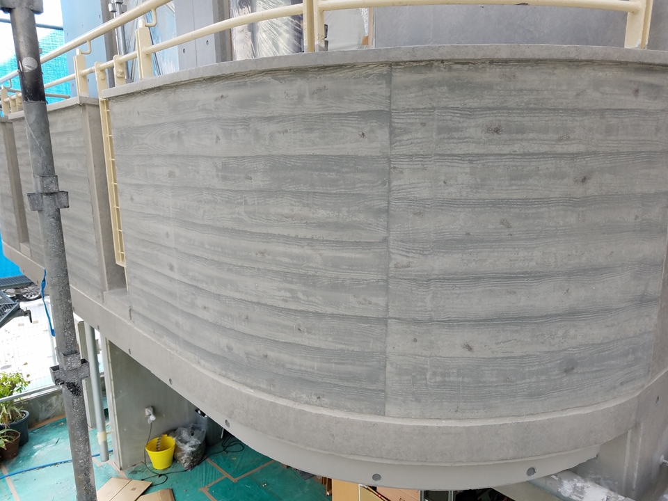 コンクリート打ち放し仕上げの質感と風合いをローラー施工(特殊ローラー等)で簡単にかつ高度に表現できる工法です。